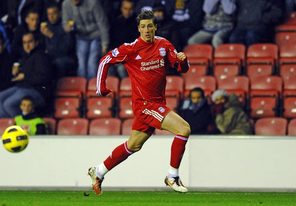Liverpool's Spanish forward Fernando Torres in action during the English Premier League football match between Wigan Athletic and Liverpool at The DW Stadium, Wigan, north-west England on November 10, 2010. AFP PHOTO/PAUL ELLIS.FOR EDITORIAL USE Additional licence required for any commercial/promotional use or use on TV or internet (except identical online version of newspaper) of Premier League/Football League photos. Tel DataCo +44 207 2981656. Do not alter/modify photo (Photo credit should read PAUL ELLIS/AFP/Getty Images)