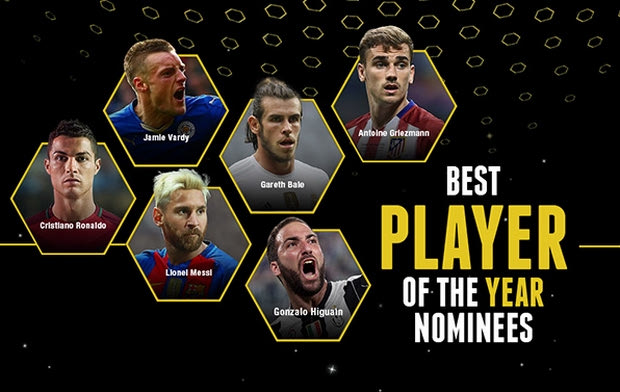 Τον τίτλο του κορυφαίου παίκτη του 2016 διεκδικούν έξι ποδοσφαιριστές, με τα ονόματα των Κριστιάνο Ρονάλντο και Λιονέλ Μέσι να ξεχωρίζουν. Τη λίστα συμπληρώνουν οι Γκάρεθ Μπέιλ, Αντουάν Γκριεζμάν, Γκονσάλο Ιγκουαΐν και Τζέιμι Βάρντι.