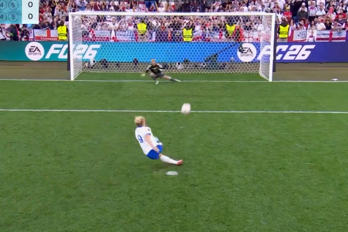 Η Μπεθ Μίντ έπαθε… Άλβαρες, με την παίκτρια να γλιστρά την ώρα της εκτέλεσης πέναλτι, πραγματοποιώντας έτσι διπλή επαφή, με αποτέλεσμα να δοθεί επανάληψη.