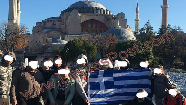 Ύψωσαν σημαία ελληνική στην Αγιά Σοφιά φίλοι του Ολυμπιακού