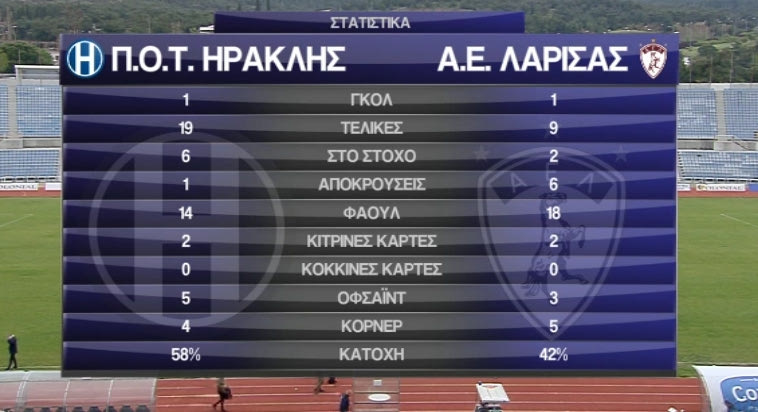 Ένα χορταστικό παιχνίδι παρακολούθησαν όσοι είδαν το ματς στο Καυτανζόγλειο. Ηρακλής και ΑΕΛ πέτυχαν από ένα γκολ, είχαν από τέσσερα δοκάρια (τρία βυσσινί) και πολλές φάσεις για γκολ.