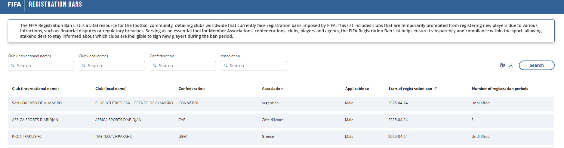 Aντιμέτωπος με ένα σημαντικό πρόβλημα βρίσκεται ο Ηρακλής. Συγκεκριμένα, το πειθαρχικό όργανο της FIFA κοινοποίησε τις ποινές του την Πέμπτη (24/4) και ανάμεσα στους τιμωρημένους βρέθηκε και ο Γηραιός.