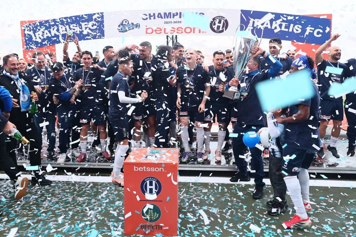 Δείτε τους πανηγυρισμούς και την απονομή του τροπαίου στον πρωταθλητή Ηρακλή στη φιέστα ανόδου της ομάδας στη Stoiximan Super League, μπροστά σε 10.000 οπαδούς της ομάδας!