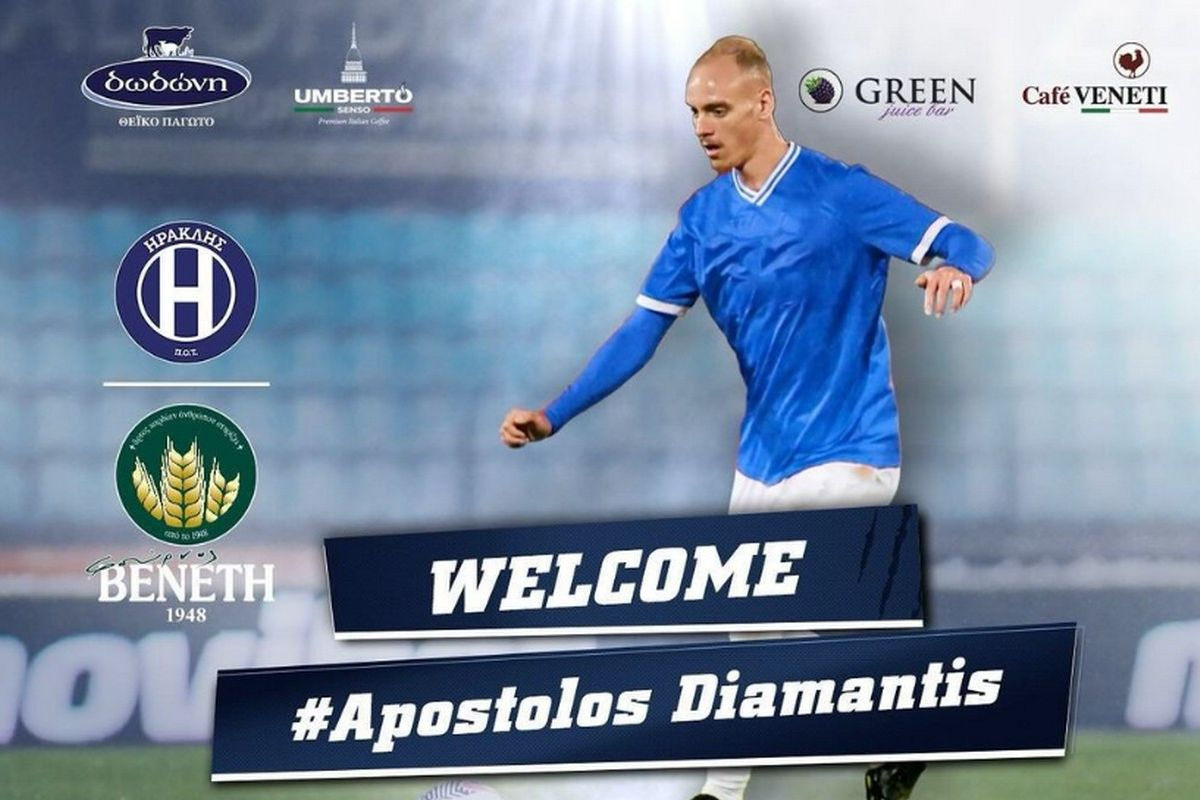 Aναλυτικά η ανακοίνωση του Ηρακλή: “H ΠΑΕ ΠΟΤ ΗΡΑΚΛΗΣ-ΦΟΥΡΝΟΙ ΒΕΝΕΤΗ ανακοινώνει την έναρξη συνεργασίας της με τον Απόστολο Διαμαντή καθώς υπέγραψε συμβόλαιο μονοετούς διάρκειας με προοπτική ανανέωσης για την επόμενη σεζόν(1+1).