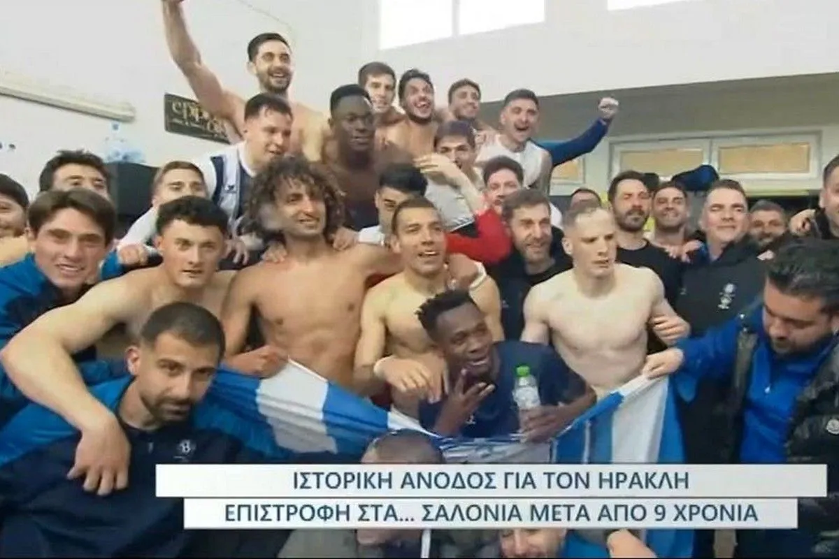 Ο Ηρακλής άλωσε την Καρδίτσα με 1-0 και κλείδωσε την επιστροφή του στη Stoiximan Super League μετά από εννέα χρόνια. Τα δάκρυα χαράς μετά τη λήξη ακολούθησε ξέφρενο πάρτι στα αποδυτήρια του Γηραιού.