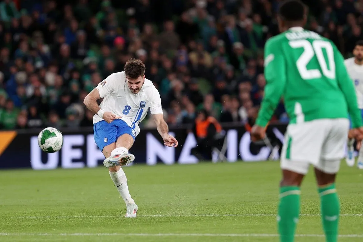 Η Εθνική άνοιξε το σκορ απέναντι στην Ιρλανδία στο 50ο λεπτό, με τον Φώτη Ιωαννίδη να βρίσκει δίχτυα με υπέροχο πλασέ εκτός περιοχής.