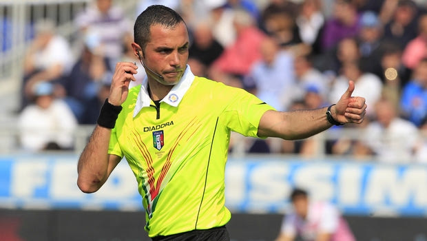 Referee Marco Guida during a Serie A soccer match between Novara and Lecce, at the Silvio Piola stadium in Novara Italy, Sunday, March 25, 2012. (AP Photo/Luca Bruno)