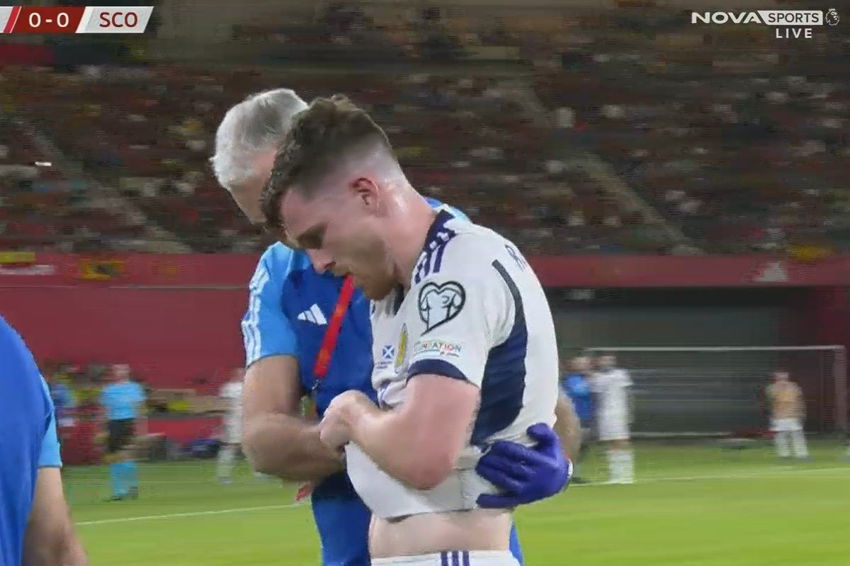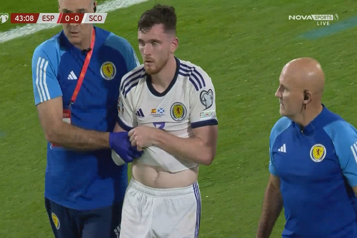 Άτυχος στάθηκε ο αριστεροπόδαρος μπακ της Εθνικής Σκωτίας και της Λίβερπουλ, Άντρεου Ρόμπερτσον, λίγο πριν το φινάλε του πρώτου μέρους ανάμεσα στην Ισπανία και τη Σκωτία.