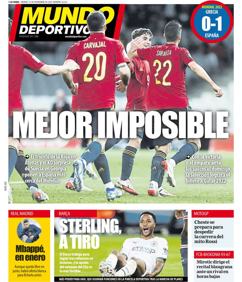 Η “ρόχα” βρίσκεται στο +1 από την Σουηδία, με τις δύο ομάδες να αναμετρώνται στη Σεβίλλη στο τελευταίο παιχνίδι των προκριματικών. Η νίκη είναι μονόδρομος για τους Σκανδιναβούς, που θέλουν μόνο τρίποντο για να βρεθούν στην κορυφή. Την ίδια στιγμή, ο ισπανικός Τύπος αποθέωσε την ομάδα, τονίζοντας πως είναι έτοιμη για το Μουντιάλ του Κατάρ 2022.