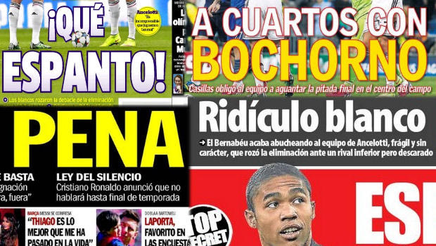 Οι μαδριλένικες εφημερίδες δεν χαρίστηκαν στη Ρεάλ κάνοντας λόγο στα πρωτοσέλιδά τους για πανικό και τρόμο. Πάρτι, φυσικά, από τις καταλανικές: Ridiculo blanco!