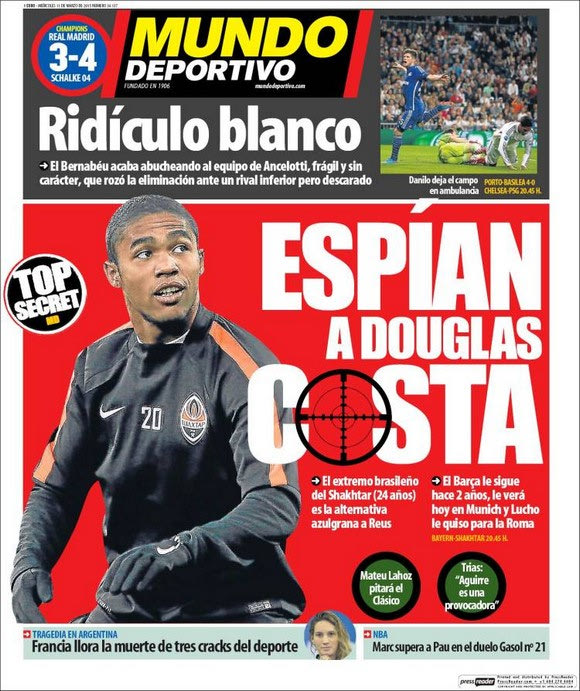 Την ευκαιρία δεν έχασε φυσικά και η καταλανική “Mundo Deportivo” η οποία δεν το έχει μεν ως κεντρικό θέμα αλλά το χτύπημά της για τη γελοία ομάδα με τα λευκά είναι χαρακτηριστικό.