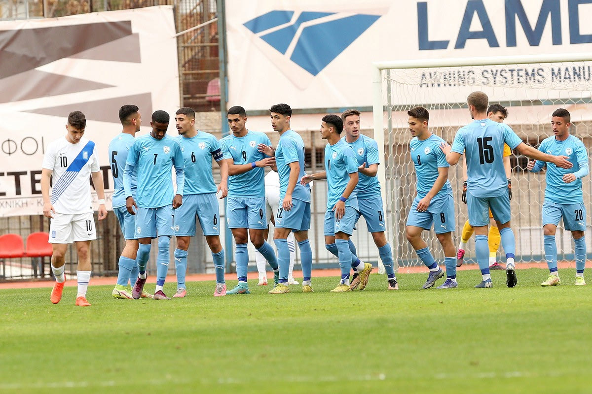 Οι παίκτες της Εθνικής Νέων του Ισραήλ πανηγυρίζουν το γκολ κόντρα στην Ελλάδα | 28 Φεβρουαρίου 2023 INTIME SPORTS