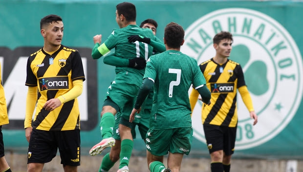 Ο Παναθηναϊκός Κ19 επικράτησε με 2-0 της ΑΕΚ στο εξ αναβολής ντέρμπι της 10ης αγωνιστικής με δύο γκολάρες από τους Σερπέζη και Καλομοίρη και μπήκε ξανά στο κόλπο της διεκδίκησης του τίτλου. (PICS)