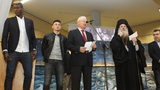 Σεβασιμότατος Μητροπολίτης Πειραιώς και Φαλήρου κ.κ. Σεραφείμ: «Θα ήθελα να ευχαριστήσω τον εκλεκτό φίλο και υπέροχο άνθρωπο, που μεταφέρει την αγάπη, την στοργή και τη διαχρονική στήριξη, του Προέδρου του Ολυμπιακού κ. Βαγγέλη Μαρινάκη, τον Βασίλη Βασιλειάδη. Ο οποίος σήμερα έρχεται εδώ, όχι μόνο για να χαρεί με τα παιδιά μας, αλλά για να δηλώσει ότι ο Ολυμπιακός που είναι μία σύνθετη έννοια με τον Πειραιά, που προβάλει πάντοτε το ευ αγωνίζεσθαι, ως τρόπο ζωής των νέων ανθρώπων.