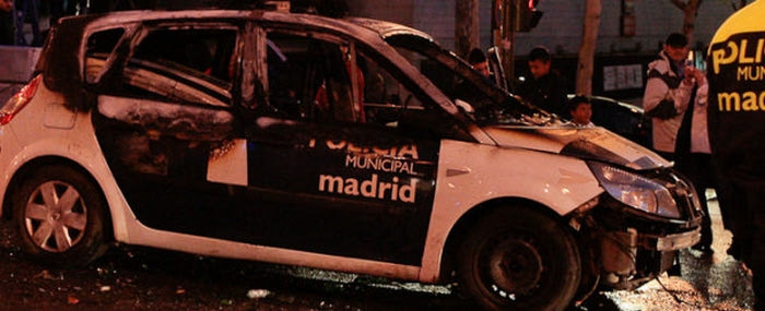 Από τα επεισόδια δεν κατάφερε να ξεφύγει όχημα της δημοτικής αστυνομίας της Μαδρίτης, το οποίο ήταν σταθμευμένο έξω από το γήπεδο “Τερέζα Ριβέρο”.