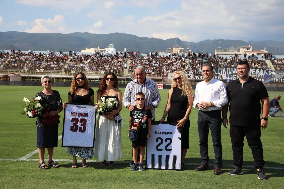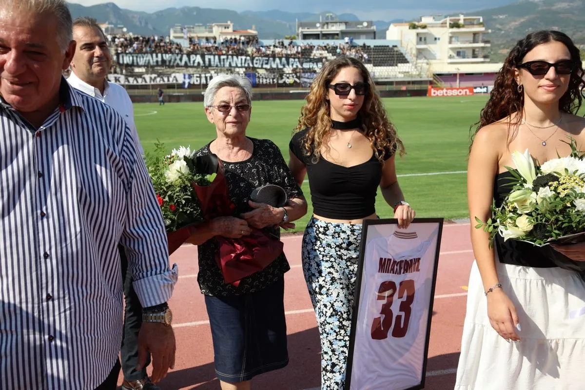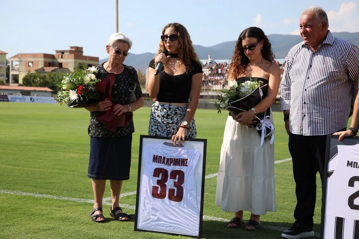 Τα αναμνηστικά στη μνήμη του εκλειπόντος, ο οποίος είχε αγωνιστεί τόσο στη Μαύρη Θύελλα, όσο και στην ομάδα της Λάρισας, έλαβαν μέλη της οικογένειάς του σε μία συγκινητική απονομή.