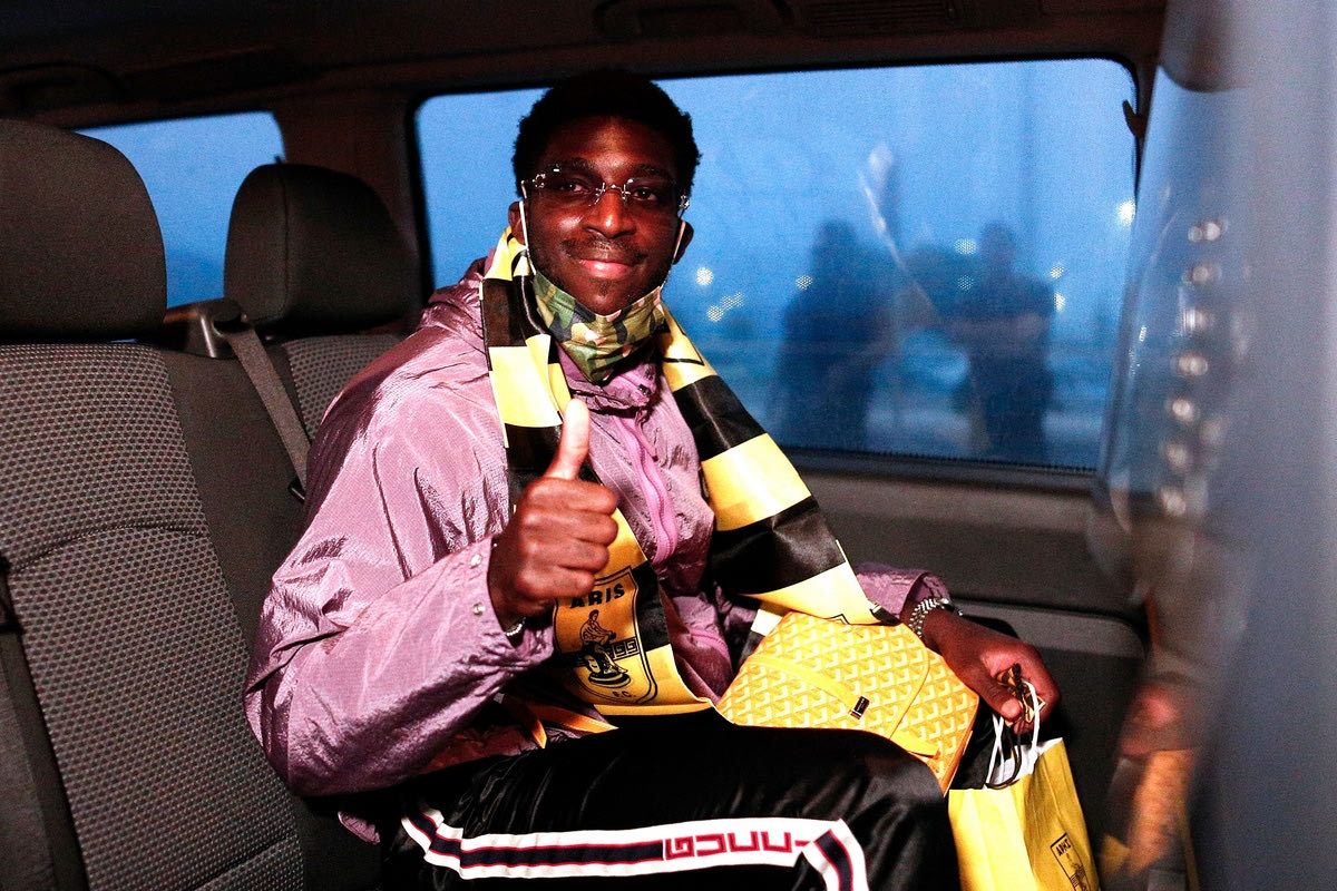 Ο Αμπουμπακάρ Καμαρά κατά την άφιξή του στην Θεσσαλονίκη για λογαριασμό του Άρη | 16 Αυγούστου 2021 Intime