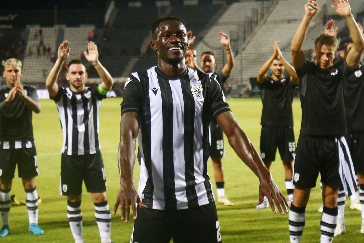 Ο Μαντί Καμαρά πανηγυρίζει τη νίκη του ΠΑΟΚ επί της Μπόρατς Μπάνια Λούκα