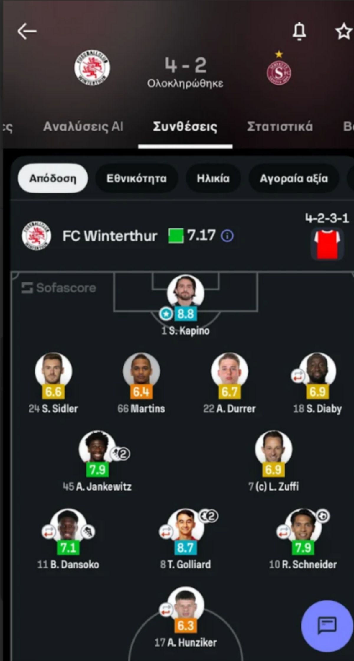 Καπίνο: Man of the match ο Έλληνας κίπερ, στη νίκη της Βίντερτουρ απέναντι στην Σερβέτ