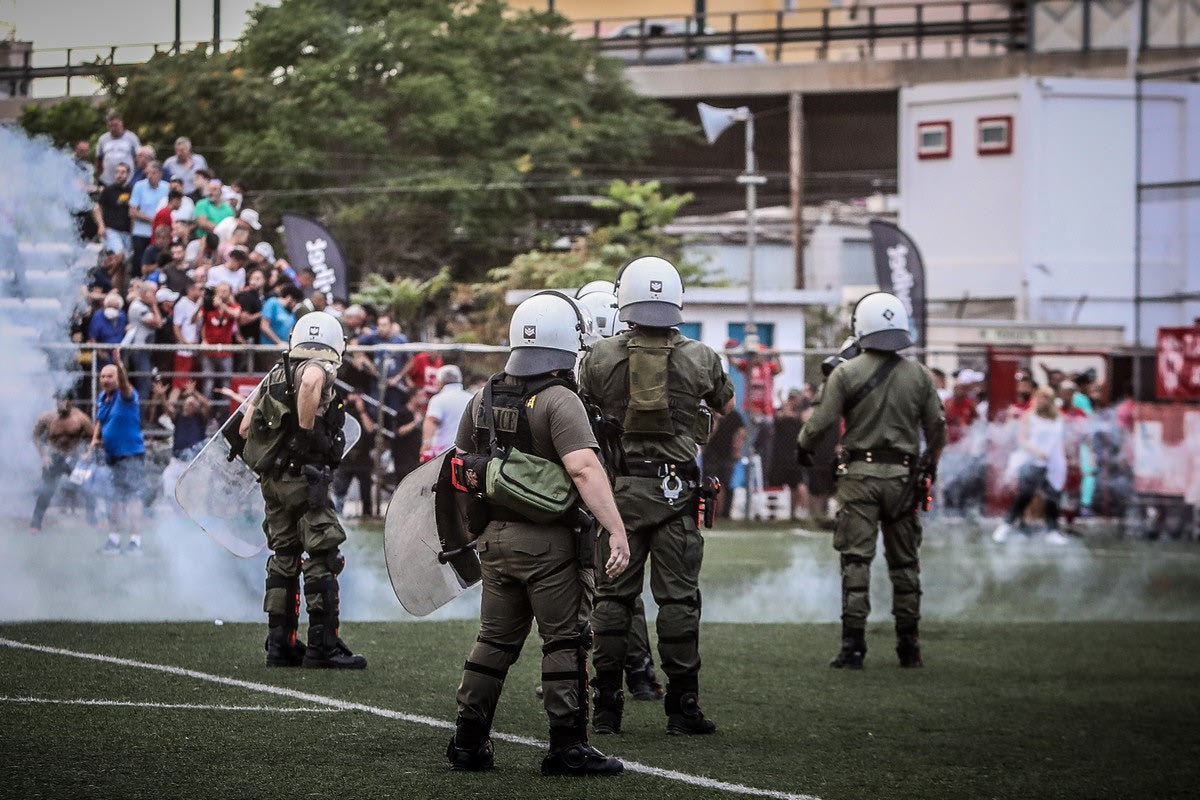 Ρίψεις καπνογόνων στα ΜΑΤ μετά το ΠΑΟ Ρουφ - Μακεδονικός Eurokinissi Sports