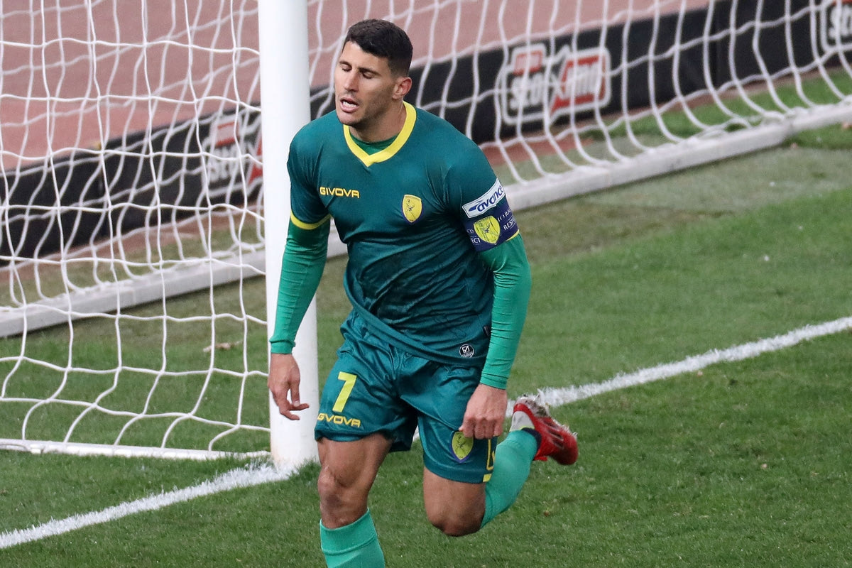 Ο Νίκος Καρέλης πανηγυρίζει το γκολ που σημείωσε κόντρα στην ΑΕΚ INTIME