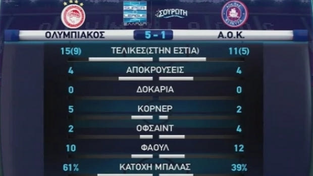 Το στατιστικά του 90λεπτου στο “Γ. Καραϊσκάκης”: