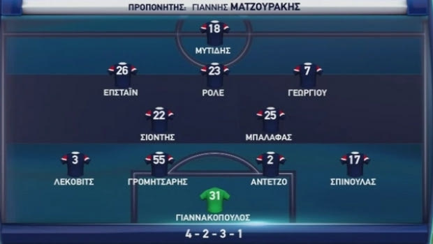 Η ενδεκάδα δεν είχε εκπλήξεις, πλην ίσως του Ταχτσίδη που είχε χάσει προπονήσεις μεσοβδόμαδα και ήταν αουτσάιντερ για το βασικό σχήμα. Χουτεσιώτης, Χατζισαφί, Μαρτίνς, Ανδρούτσος, Πάρντο, Βρουσάι και Τζούρτζεβιτς έμειναν στον πάγκο και ο Βέργος κόπηκε από τη 18άδα.