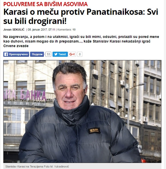 Ο Σέρβος Στάνισλαβ Κάρασι, βασικός μέσος του Ερυθρού Αστέρα στους ημιτελικούς του Κυπέλλου Πρωταθλητριών το 1971, υποστήριξε ότι οι συμπαίκτες του ναρκώθηκαν πριν από την ήττα με 0-3 στην Αθήνα.