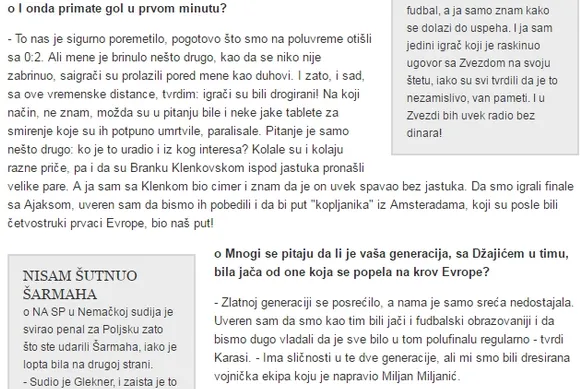 “Οι συμπαίκτες μου περνούσαν από δίπλα μου σαν φαντάσματα. Τώρα, εκ των υστέρων, δηλώνω: οι παίκτες είχαν ναρκωθεί! Με ποιον τρόπο, δεν το γνωρίζω”, δήλωσε για την εικόνα των Σέρβων στο δεύτερο παιχνίδι.
