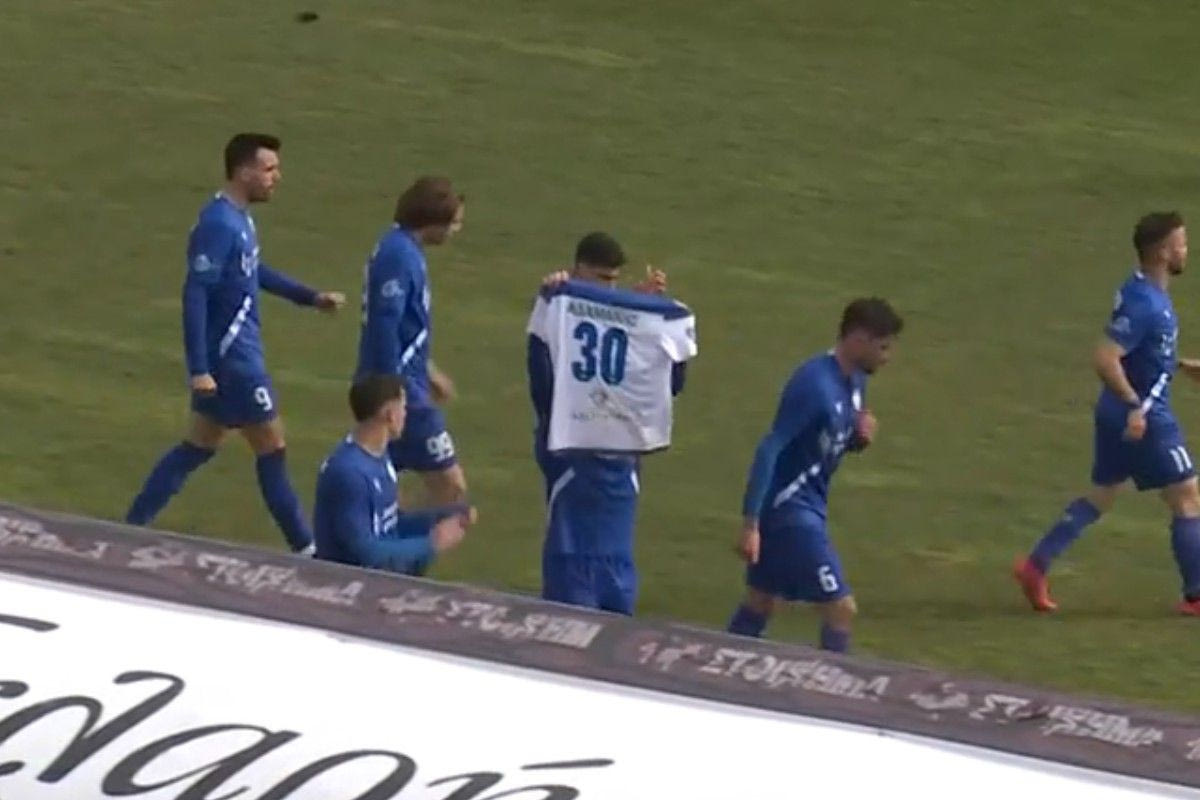 Ο σκόρερ μάλιστα έκανε μια ξεχωριστή αφιέρωση, αφού σήκωσε ψηλά τη φανέλα του Ιορδάνη Αδαμάκη που έχασε τη ζωή του πριν από δύο χρόνια στη σιδηροδρομική τραγωδία των Τεμπών.