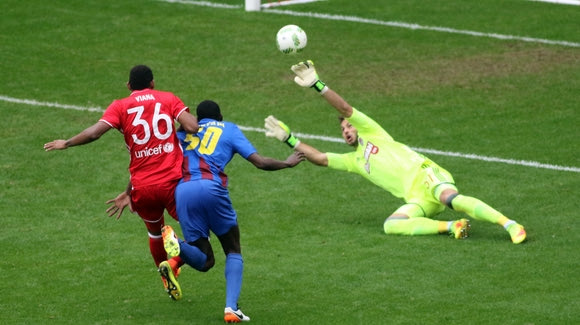Με τα ακροδάχτυλα ο γκολκίπερ των Πειραιώτων έκανε σπουδαία επέμβαση, έδιωξε σε κόρνερ και γλίτωσε από επιπλέον πονοκεφάλους τον Ολυμπιακό.
