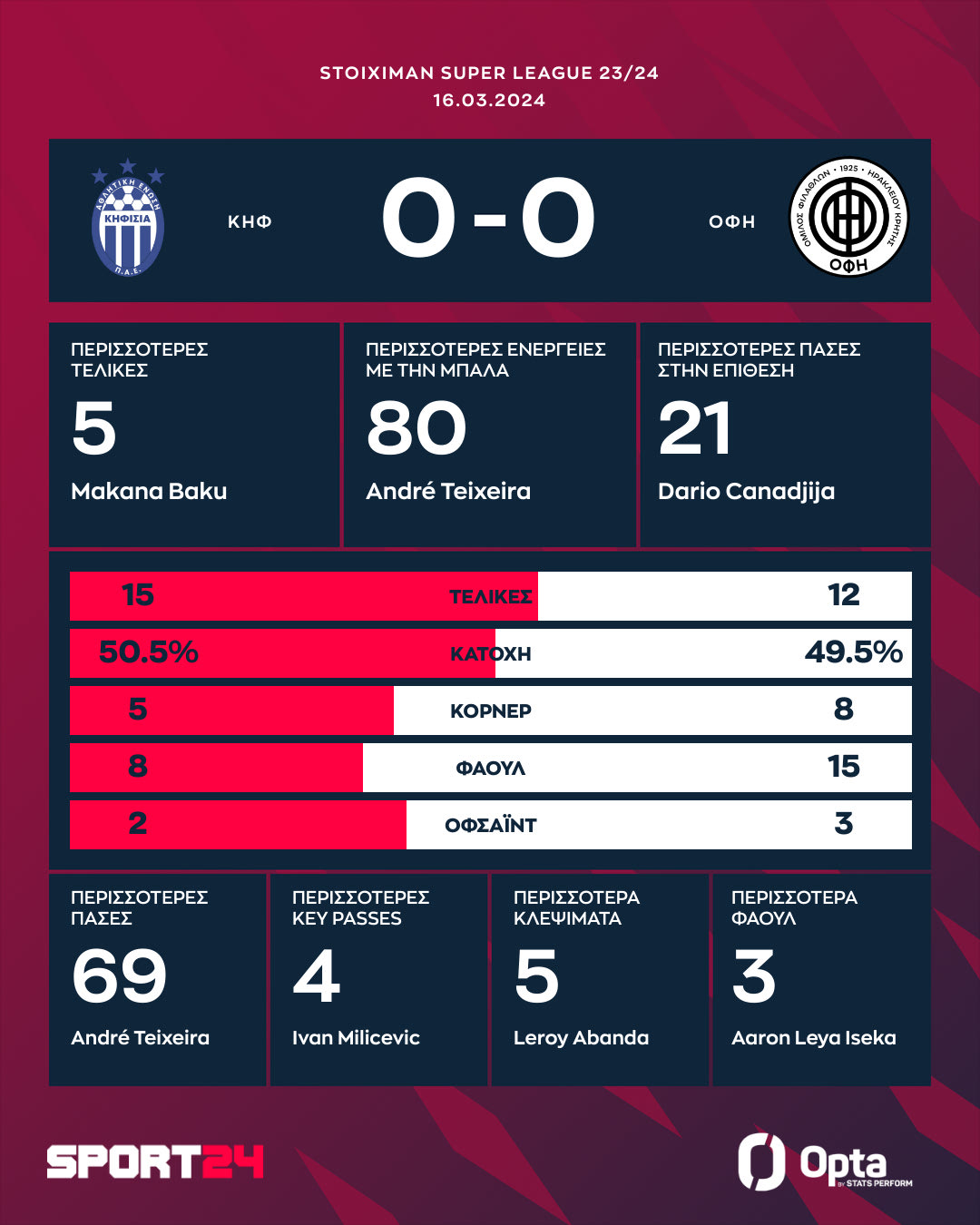 Τα στατιστικά και οι κορυφαίες επιδόσεις στο Κηφισιά - ΟΦΗ
