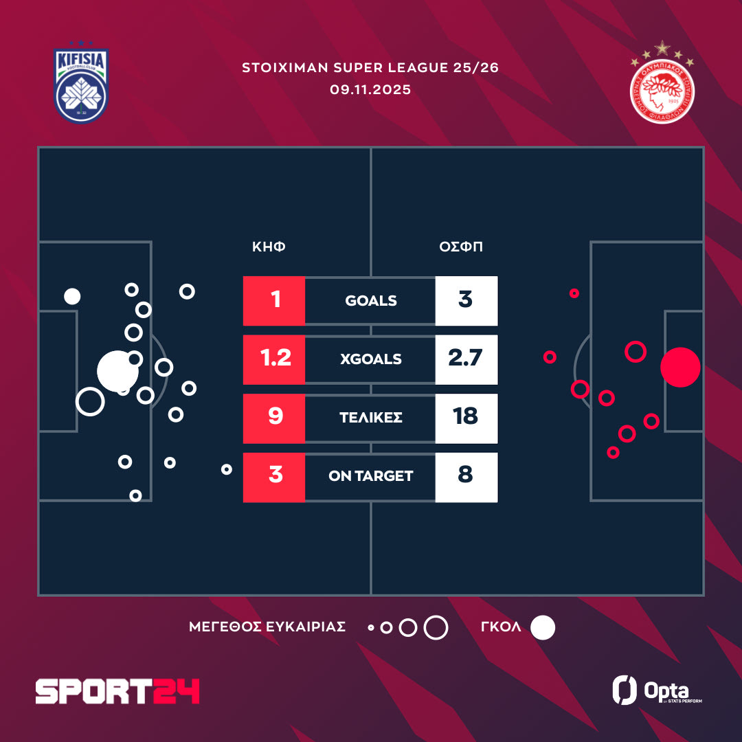 Στη βαθμολογία ο Ολυμπιακός πέρασε στην πρώτη θέση με 25 βαθμούς και περιμένει το αποτέλεσμα του ΠΑΟΚ – Παναθηναϊκός. Στους 12 βαθμούς έμεινε η Κηφισιά.