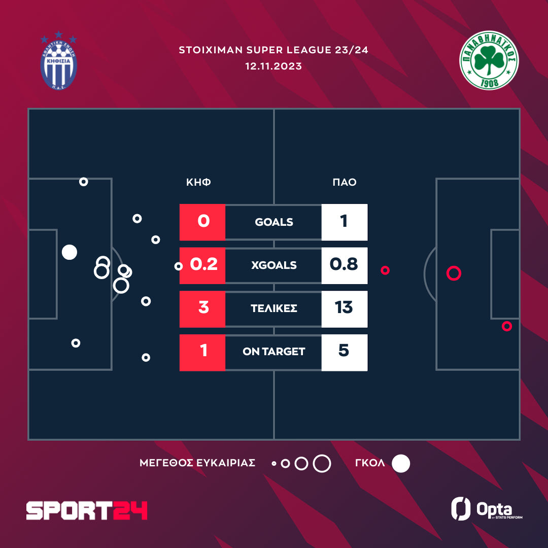 Τα xgoals και οι τελικές της αναμέτρησης Κηφισιά - Παναθηναϊκός SPORT24/OPTA