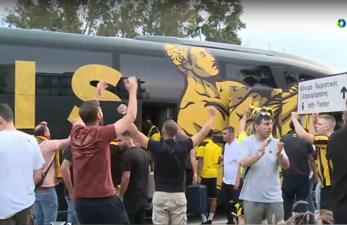 Οι οπαδοί των κίτρινων “ντόπαραν” την αποστολή κατά την αναχώρησή της και ζήτησαν το τρόπαιο στον Λευκό Πύργο.
