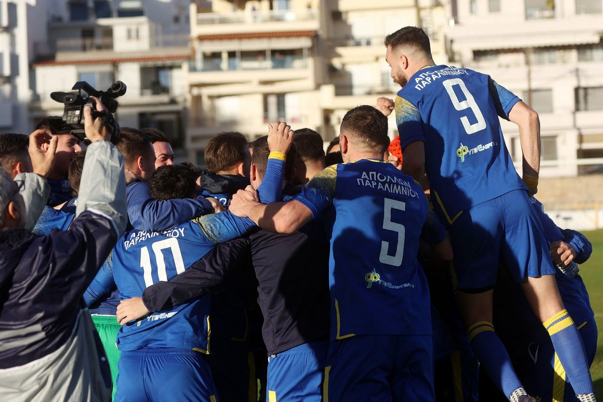 Οι παίκτες του Απόλλωνα Παραλιμνίου πανηγυρίζουν την πρόκριση στους "8" του Κυπέλλου Ελλάδας