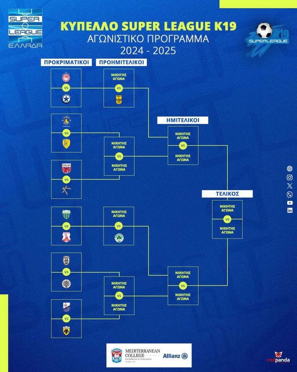 “Για πρώτη φορά, η Super League, σε συνέχεια της ομόφωνης απόφασης του Διοικητικού Συμβουλίου, διοργανώνει το Κύπελλο Super League K19.
