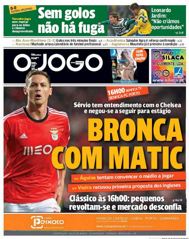 Στο ίδιο κείμενο αναφέρεται πως το πιθανότερο είναι να μην αγωνιστεί απόψε στο “Estadio Luz”καθώς τη Δευτέρα θα ταξιδέψει στην αγγλική πρωτεύουσα και την Τρίτη θα ανακοινωθεί επίσημα ως παίκτης της Τσέλσι.