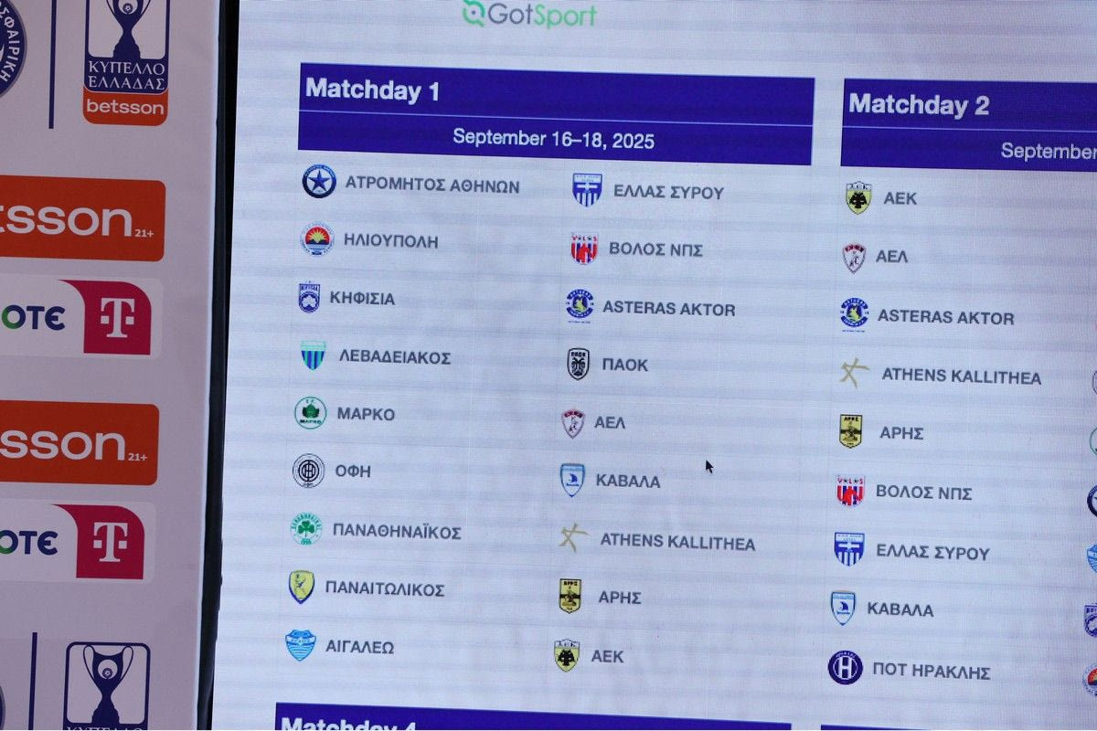 Κλήρωση Κυπέλλου Ελλάδας Betsson: Αυτό είναι το πρόγραμμα της πρώτης αγωνιστικής