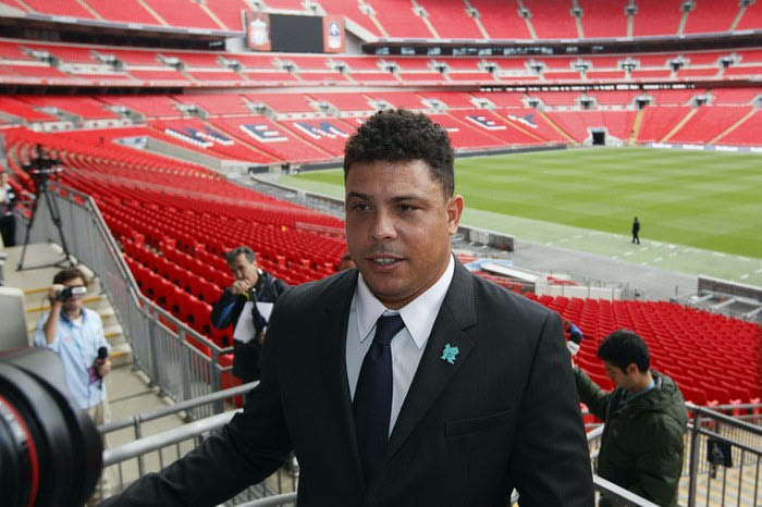 Former Brazilian footballer Ronaldo poses for photographers during a photocall at the draw for the London 2012 Olympic football tournament at Wembley Stadium in London, on April 24, 2012. Host nation Great Britain will kick off the Olympic football tournament against Senegal at Manchester United's Old Trafford ground on July 26 following the draw made at Wembley. AFP PHOTO / JUSTIN TALLIS (Photo credit should read JUSTIN TALLIS/AFP/Getty Images)