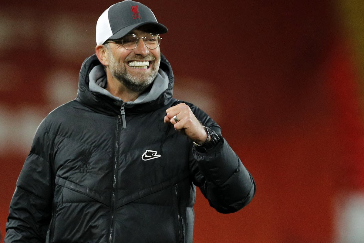 Liverpool's manager Jurgen Klopp celebrates at the end of the English Premier League soccer match between Liverpool and Southampton at Anfield stadium in Liverpool, England, Saturday, May 8, 2021. (Phil Noble/Pool via AP) @ 2021 Phil Noble/Associated Press