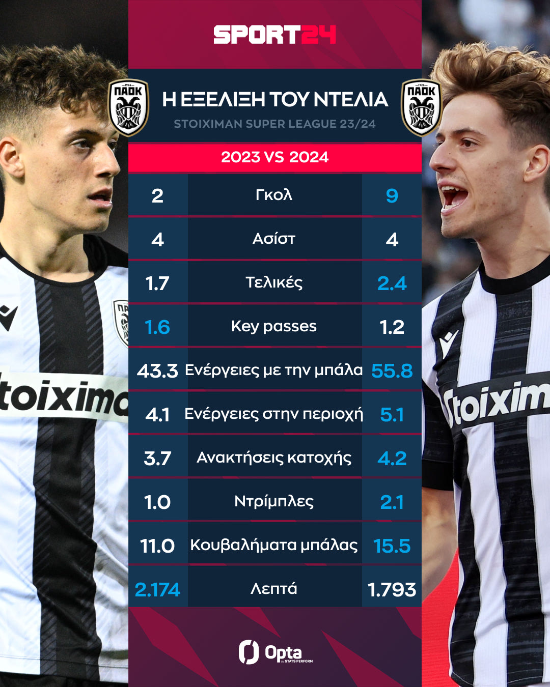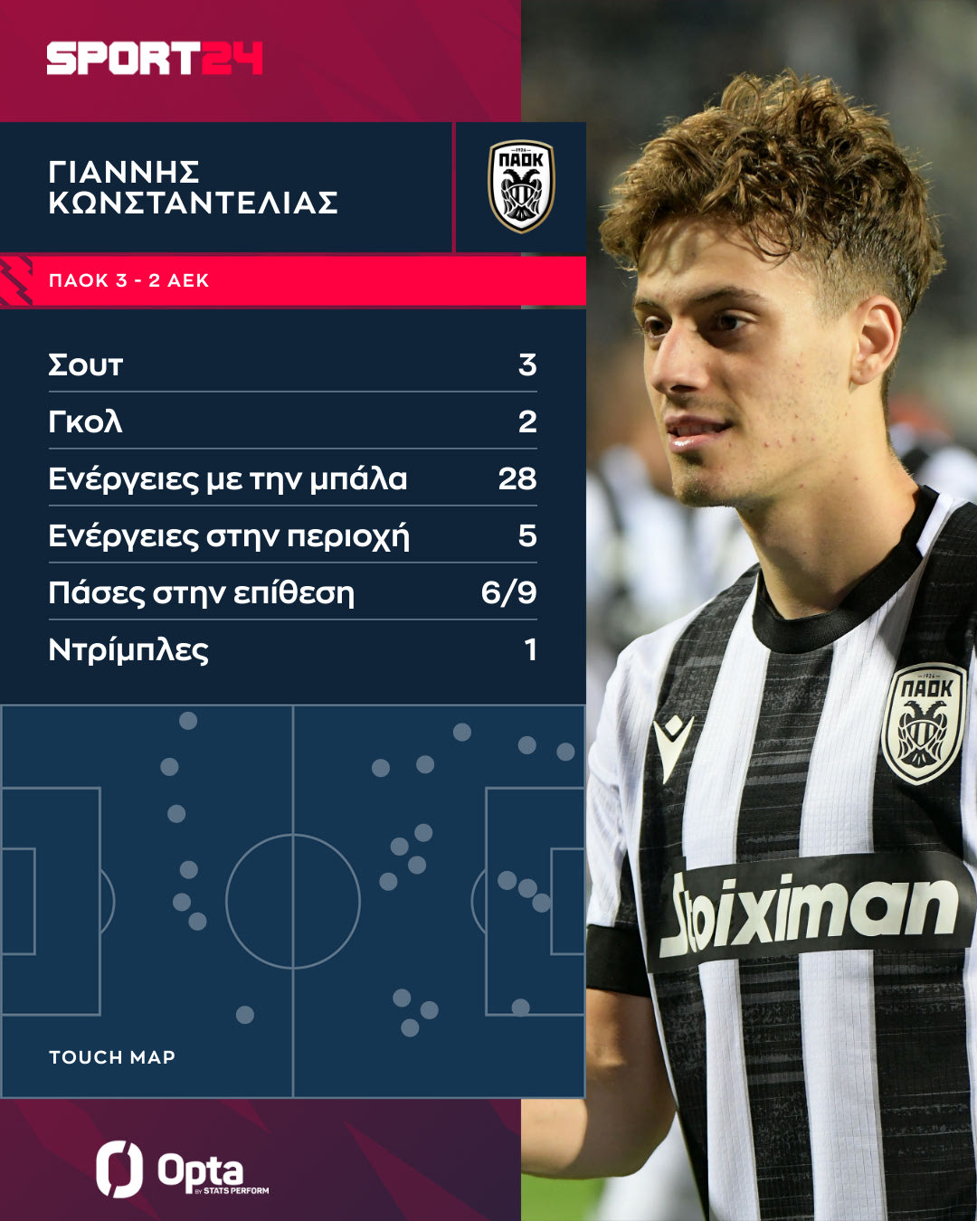 Ο Κωνσταντέλιας έκρινε το ντέρμπι με εμφάνιση γεννημένου κυνηγού και ο Θέμης Καίσαρης χρησιμοποιεί τα δεδομένα της Opta για να αναλύσει την εξέλιξη του wonderkid του ΠΑΟΚσε σχέση με την περσινή απόδοσή του.