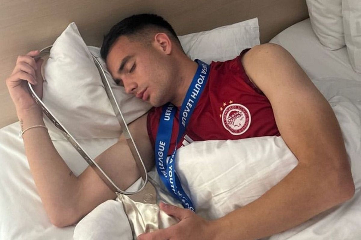 Ο αρχηγός του Ολυμπιακού κοιμήθηκε αγκαλιά με το τρόπαιο του Youth League, όπως ο Μέσι