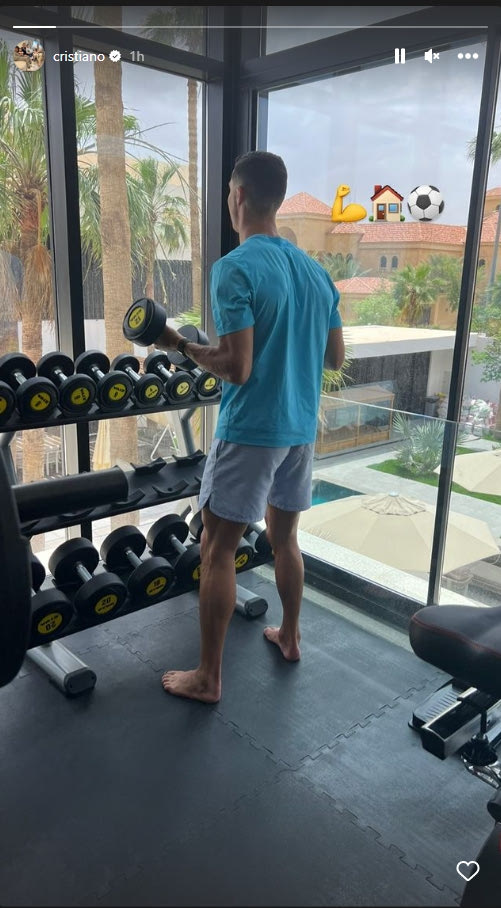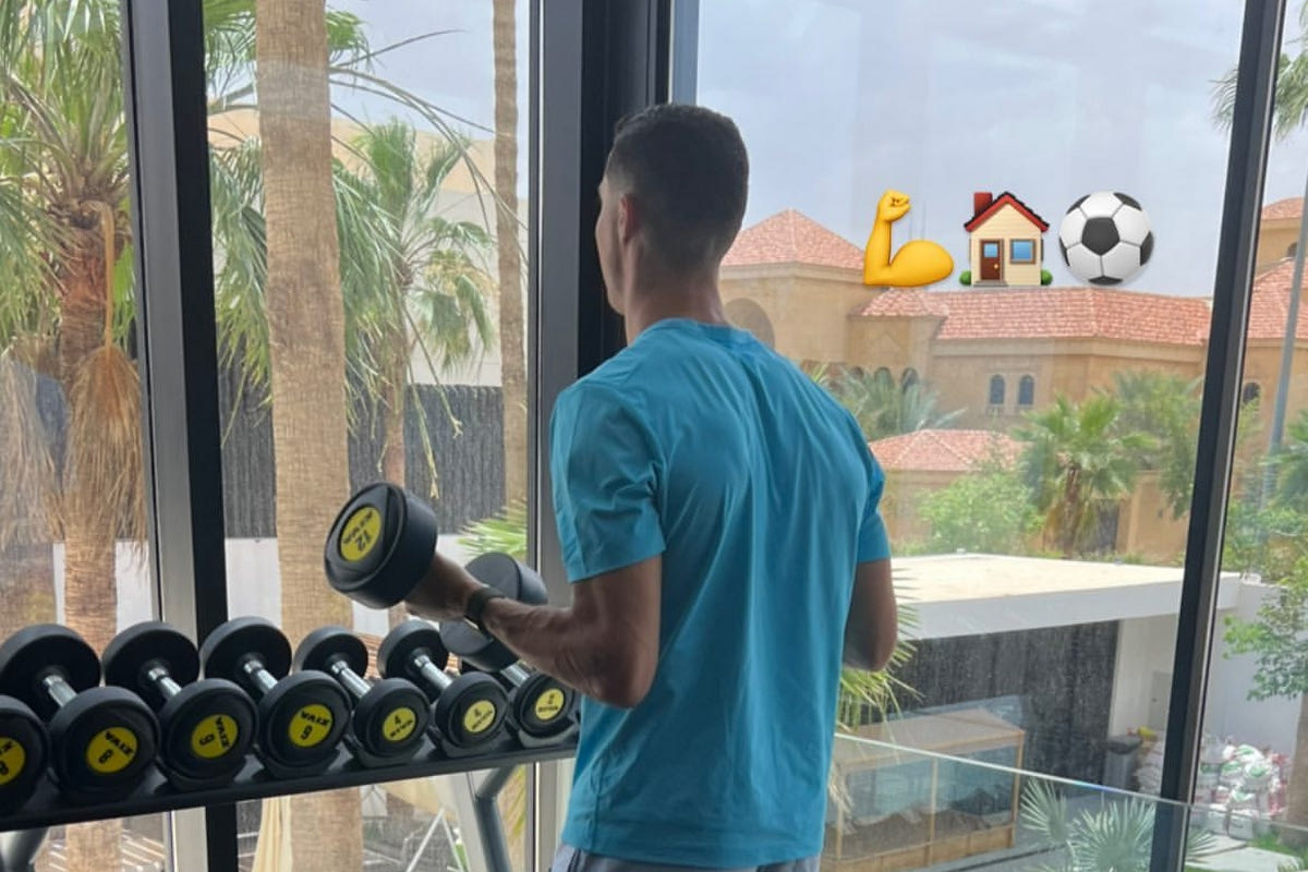 Ο Κριστιάνο Ρονάλντο μοιράστηκε μία εικόνα από την απαιτητική προετοιμασία που πραγματοποιεί καθημερινά. Η φωτογραφία, στην οποία απεικονίζεται ο ποδοσφαιριστής της Αλ Νασρ να σηκώνει βαράκια, μας επιτρέπει να δούμε μερικές λεπτομέρειες του σπιτιού στο οποίο διαμένει στο Ριάντ με την σύντροφό του, Χεορχίνα και τα πέντε παιδιά τους.