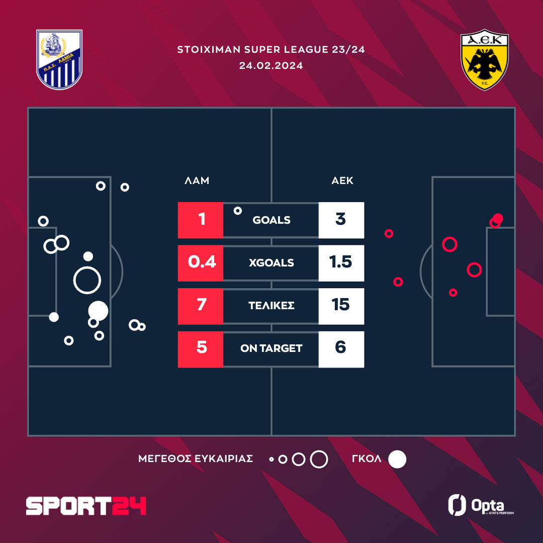 Λαμία – ΑΕΚ 1-3: Η Ένωση πέρασε με πειστική τριάρα και συνεχίζει μόνη πρώτη στην κορυφή