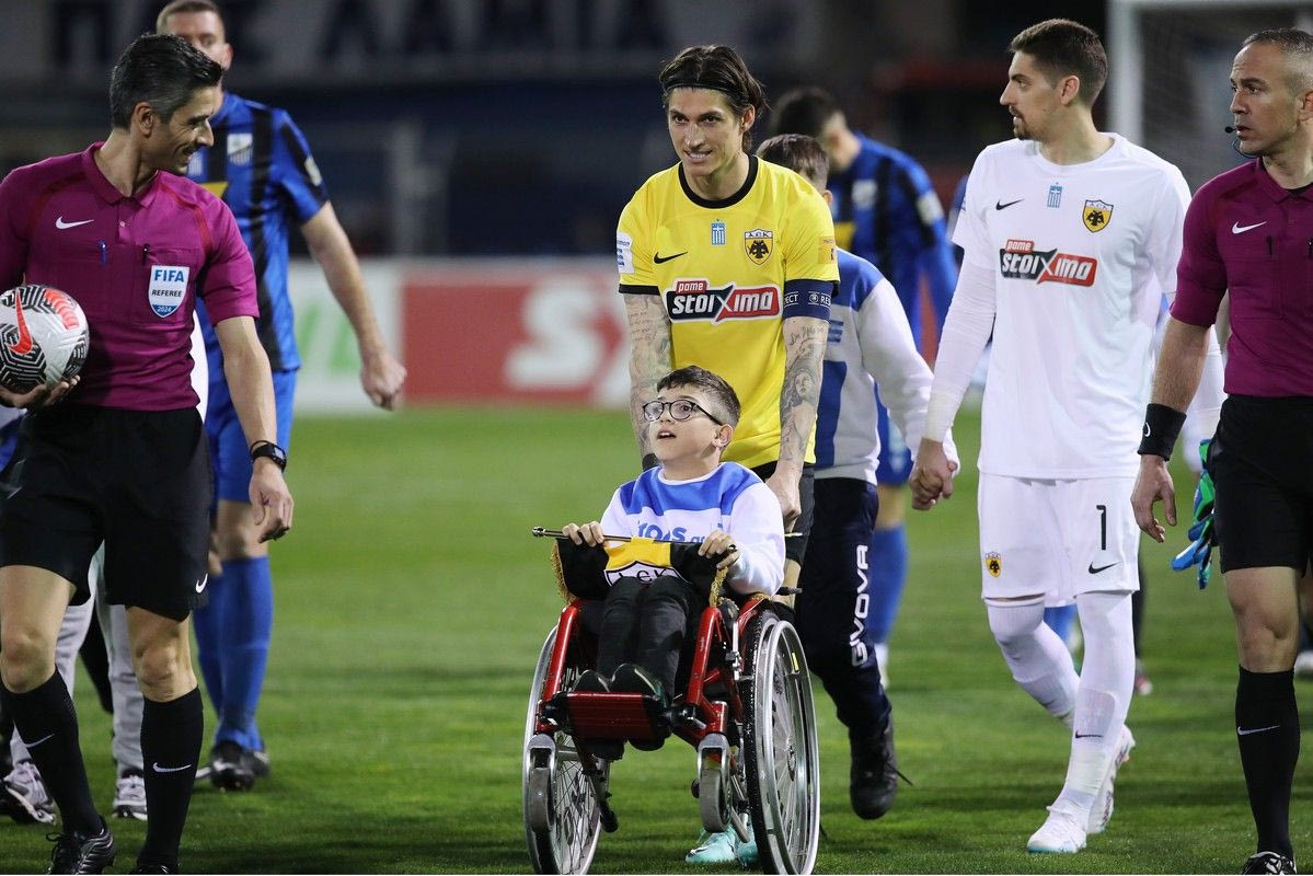 Η Λαμία φιλοξενεί την ΑΕΚ στο Αθανάσιος Διάκος και οι δύο ομάδες μπήκαν στον αγωνιστικό χώρο μαζί με τον Γιάννη Παπαστεφανάκη, τον μικρό φίλο του ΠΑΟΚ που είναι γνωστός σε όλο το φίλαθλο κοινό. Ο Στίβεν Τσούμπερ του έδωσε μάλιστα το λάβαρο της ΑΕΚ και τον μετέφερε στον αγωνιστικό χώρο.