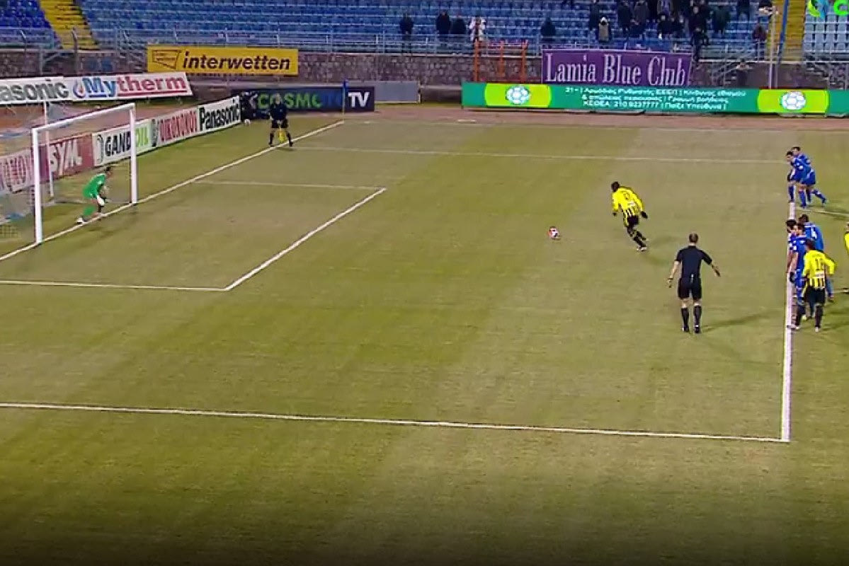Η Λαμία φιλοξένησε τον Άρη στο Αθανάσιος Διάκος για το δεύτερη μεταξύ τους αναμέτρηση για την προημιτελική φάση του Κυπέλλου Ελλάδας, με τους κίτρινους να κερδίζουν πέναλτι σε μαρκάρισμα του Μπεχαράνο πάνω στον Μπερτόγλιο, με το VAR να επικυρώνει την απόφαση του διαιτητή. Ο Αμπουμπακάρ Καμαρά έστειλε την μπάλα δοκάρι και έξω.