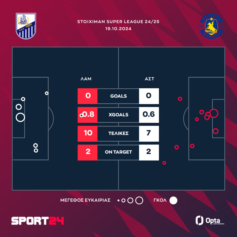 Έτσι η Λαμία έμενε για όγδοο συνεχόμενο ματς χωρίς νίκη σε πρωτάθλημα και κύπελλο και το επόμενο Σάββατο (26/10) θα παίξει εκτός έδρας με τον Λεβαδειακό. Από την άλλη ο Αστέρας Τρίπολης AKTOR δεν μπόρεσε να δώσει συνέχεια στις νίκες επί της Athens Kallithea και της Καβάλας και την επόμενη Κυριακή (27/10) θα υποδεχθεί στο “Θ. Κολοκοτρώνης” τον Ολυμπιακό.