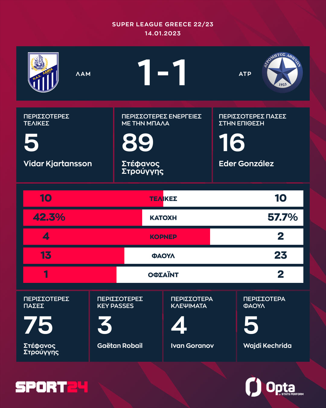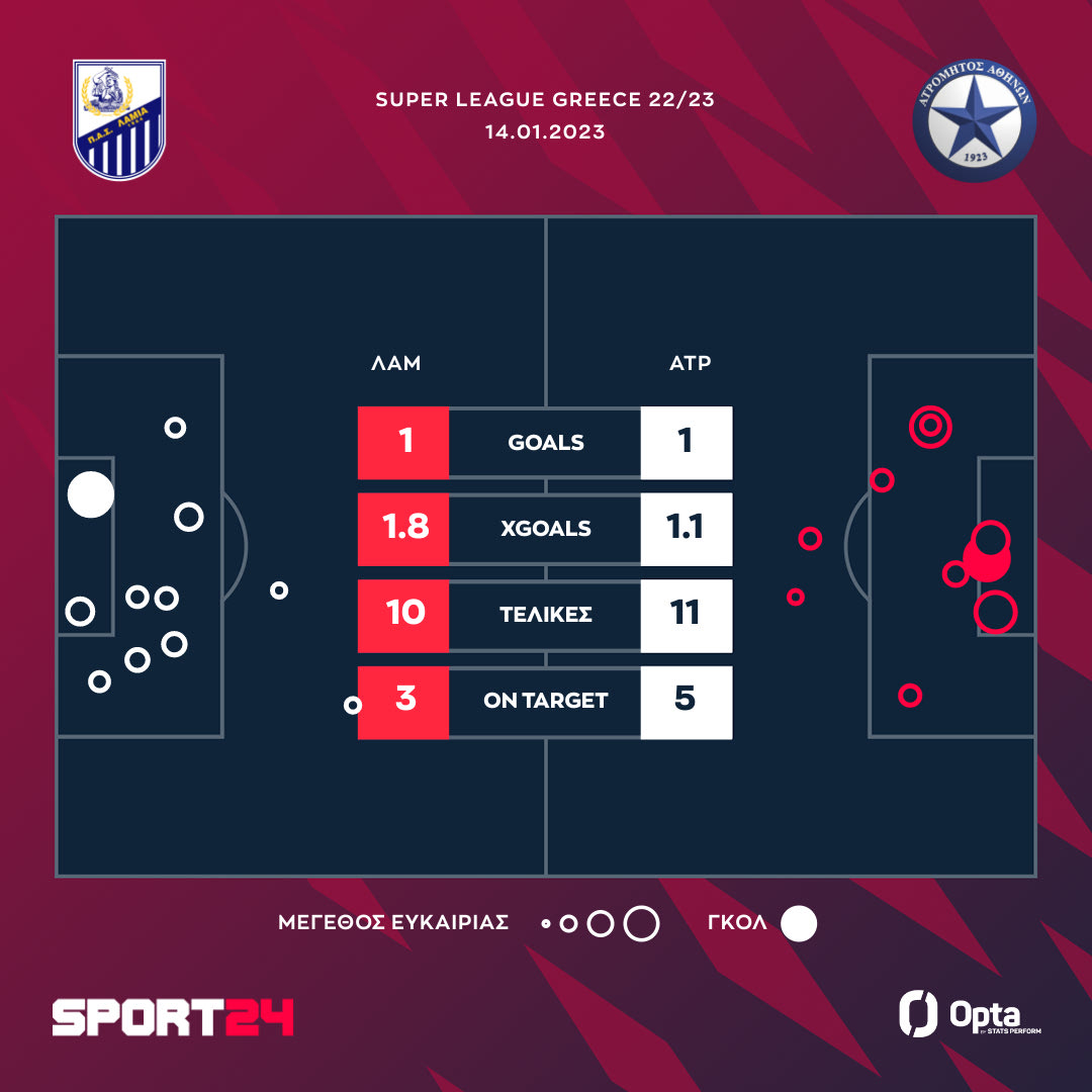 Ισόπαλο 1-1 έληξε το παιχνίδι ανάμεσα στη Λαμία και τον Ατρόμητο με τις δύο ομάδες να έχουν 21 τελικές και από ένα ημίχρονο στον αγωνιστικό χώρο αλλά καμία εκ των δύο να μην βρίσκει ένα δεύτερο τέρμα για να πάρει το τρίποντο.