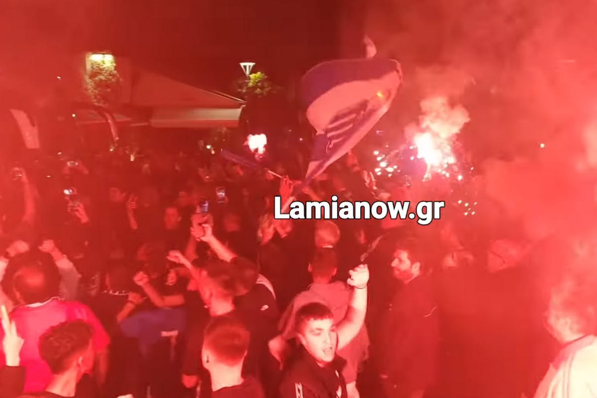 Με συνθήματα και καπνογόνα υποδέχθηκαν οι φίλοι της Λαμίας την ομάδα τα ξημερώματα της Κυριακής (14/5) που επέστρεψε στην πόλη μετά την παραμονή της στη Stoiximan Super League.